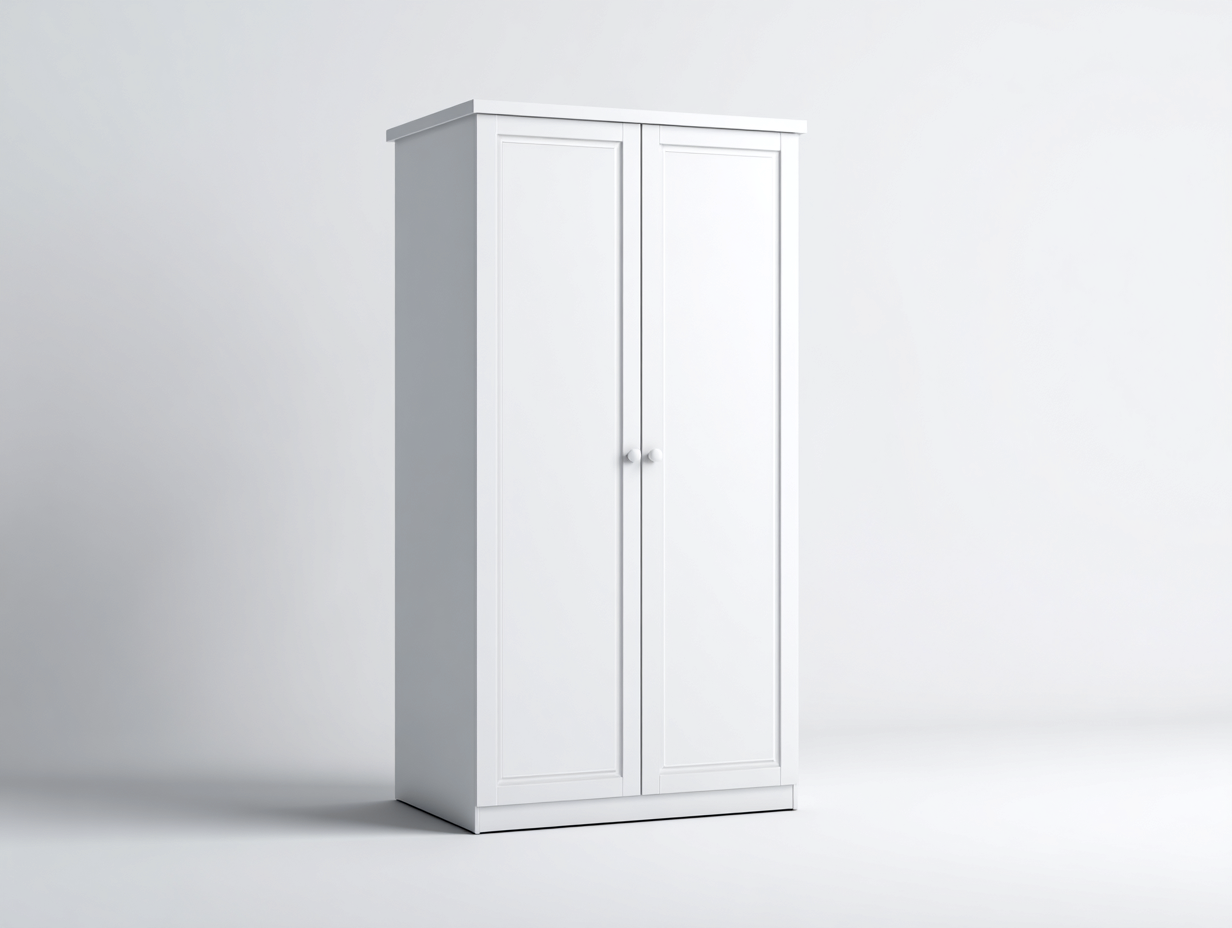 Armadio compatto a due ante dal design moderno, ideale per camere da letto di dimensioni ridotte o come soluzione contenitiva aggiuntiva.
