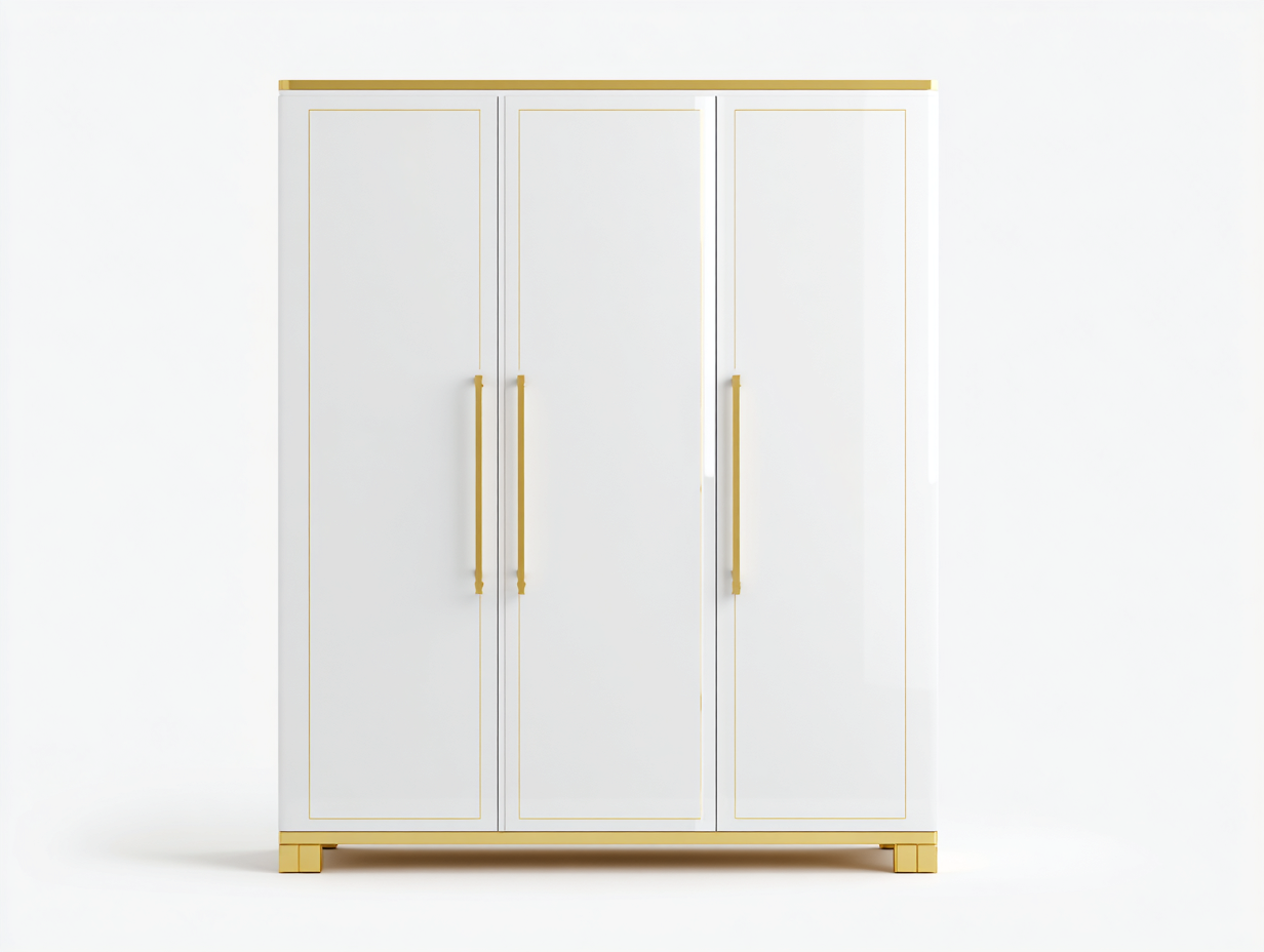 Armadio elegante con dettagli dorati, ideale per una camera da letto raffinata.
